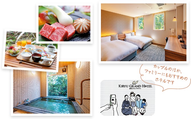 相老では、桐生グランドホテル(C)で1泊するのもおすすめです。館内には全7タイプの客室や男女別の大浴場、庭園に面したラウンジなどを完備。旬の野菜がたっぷりな朝食付きや上州牛の陶板焼き御膳の夕食付きなどのプランが用意されています。