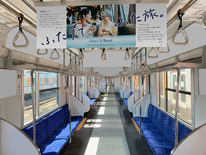 【花王×東武鉄道】ビオレと東武鉄道がつなぐ、大人になってからの親子じかん「ふたりで、ふた旅。」想いを乗せた交通広告を展開します。東武鉄道株式会社は、花王株式会社のスキンケアブランド「ビオレ」とともに「ふたりで、ふた旅。」プロジェクトを企画し、その一環として2025 年 9 月 4 日(木)に「東武特急スペーシア X で行く 日光日帰りツアー」を開催、4組8名の親子をご招待しました。本プロジェクトに込めた想いを沿線の皆様にお届けするため、実際のツアー当日のポートレートを使用した交通広告を2025年11月7日(金)から東武線の駅、車両内で展開します。