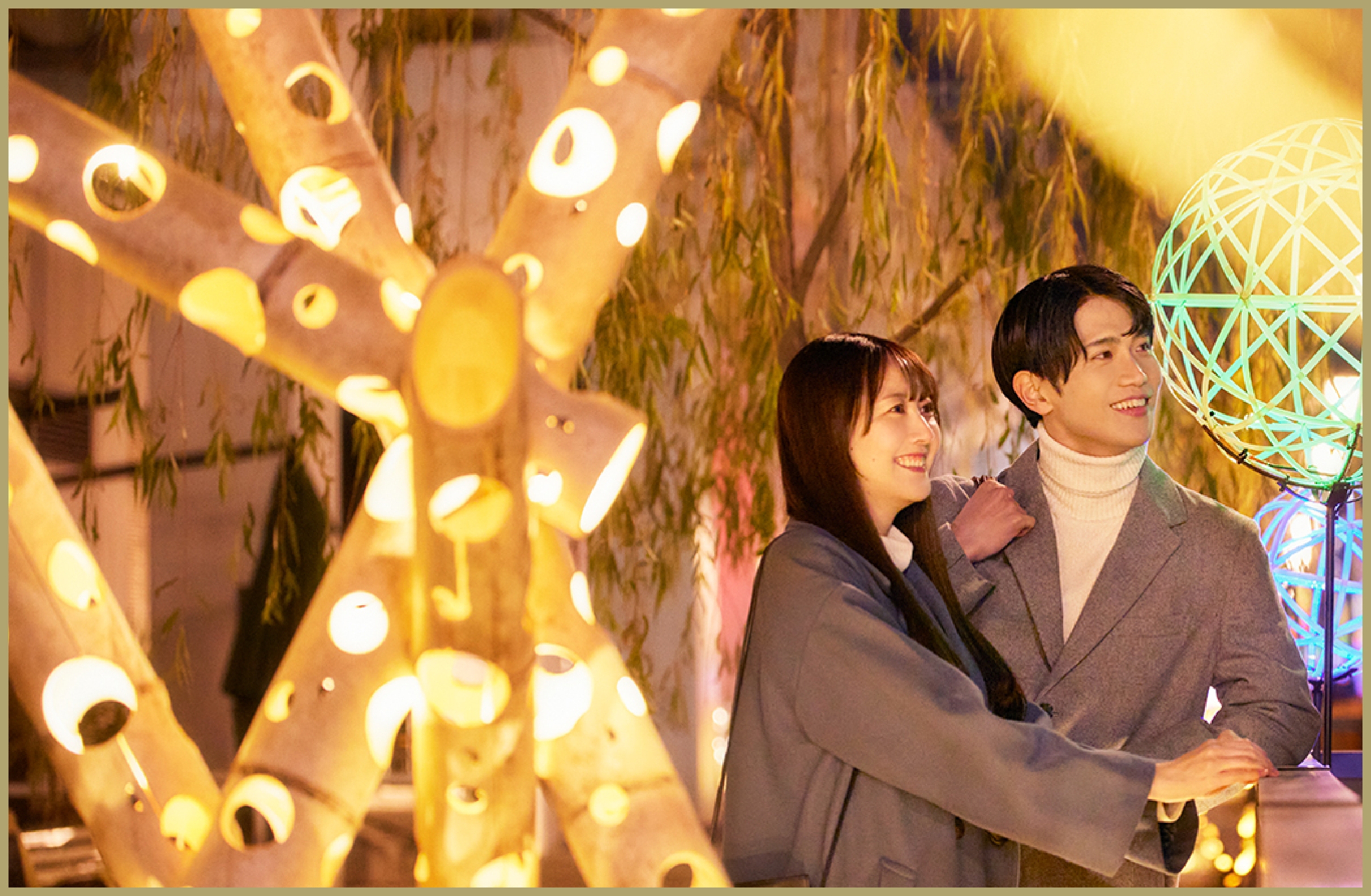 - 隅田川沿いに店を構えるタリーズコーヒーは、東京スカイツリーをバックに撮影スポットとなっています。店舗のリニューアルと併せて竹あかりのオブジェを設置し、新たなフォトスポットとして冬の川辺を彩ります。