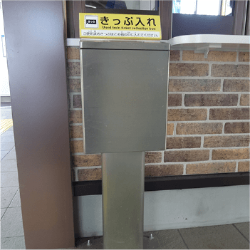 กรุณาใส่ตั๋วที่ใช้แล้วลงใน “กล่องเก็บตั๋ว” ที่จัดเตรียมไว้แล้วเดินออกจากสถานี